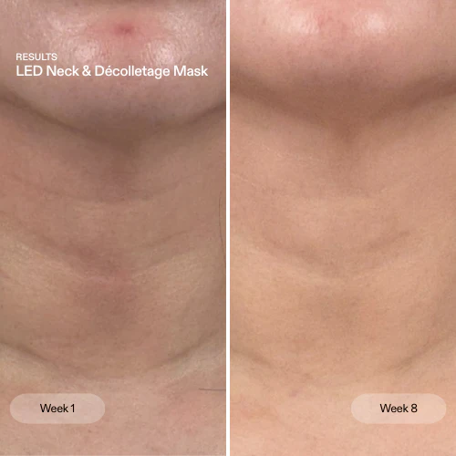 - The LED Neck & Décolletage Mask boosts collagen production, reducing wrinkles by 30% and improving plumpness by 57% in 8 weeks*